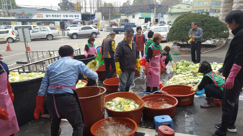 교하동 새마을 남·녀협의회는 지난 7일 교하동 행정복지센터 앞에서 ‘사랑의 김장김치 담그기’ 행사를 가졌다.
