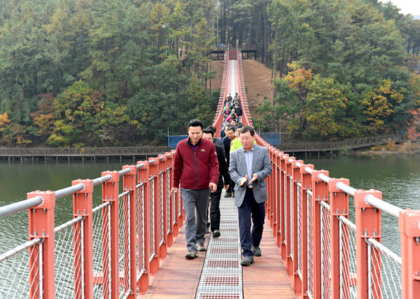 이번 현장점검은 개장시 발생할 미비한 점에 대한 의견을 수렴해 준공 전 조치하기 위한 것이다. 마장호수 흔들다리는 국내 최장인 220m의 보도교로 안전성 확보를 위해 풍속 30m/s 돌풍에도 안전하도록 풍동시험을 거쳤고 지진에도 견딜 수 있는 내진설계를 통해 진도 7에도 안정성을 확보했으나 구조물의 안전을 위해 준공 전 학회 등 전문가의 자문을 받아 다시 한 번 검토를 한 후 준공할 예정이다.