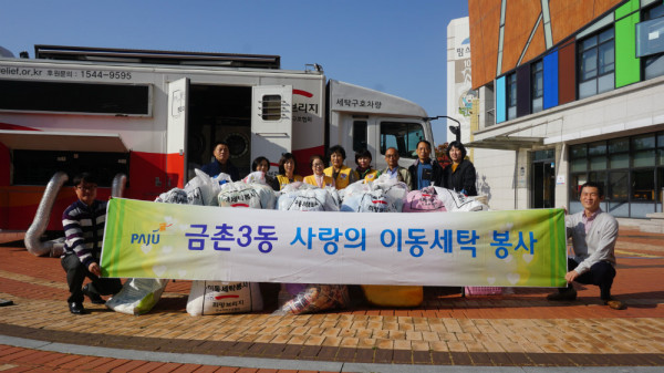 파주시 금촌3동(동장 이성용)에서는 지난 25일 관내 저소득층을 대상으로 이불 빨래를 해주는 이동세탁 봉사를 실시했다.