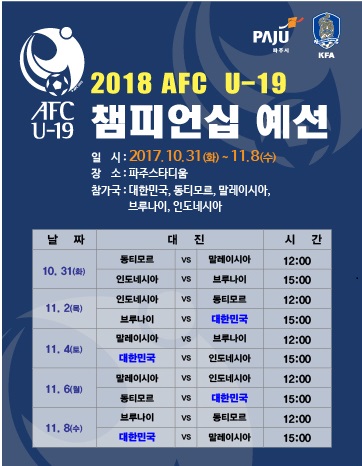 2018 AFC U-19 챔피언십 예선전, 파주시 개최