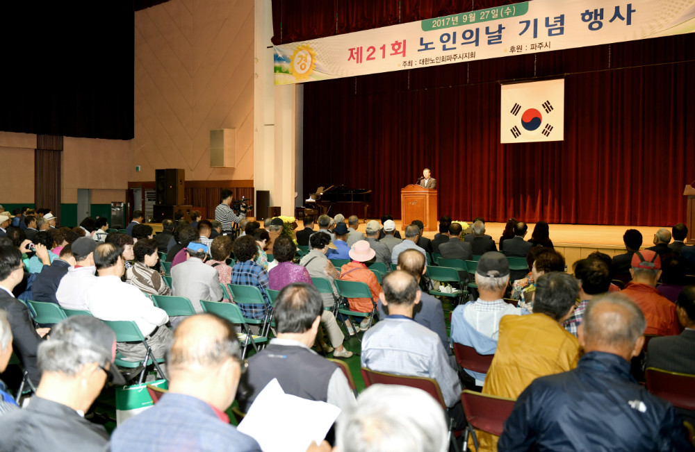 이날 기념행사에는 김준태 파주시 부시장, 이평자 파주시의회의장, 이명세 대한노인회파주시지회장, 윤후덕 국회의원, 경로당 회장 등 500여명이 참석한 가운데 성황리에 개최됐다.