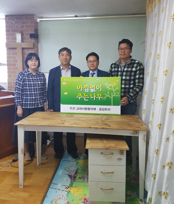파주시 교하동의 교하사랑협의체(교하동 지역사회보장협의체)는 지난 28일 ‘아낌없이 주는 나무’ 12호점으로 선정된 최 모 씨 가정에 맞춤형 책상을 전달했다.