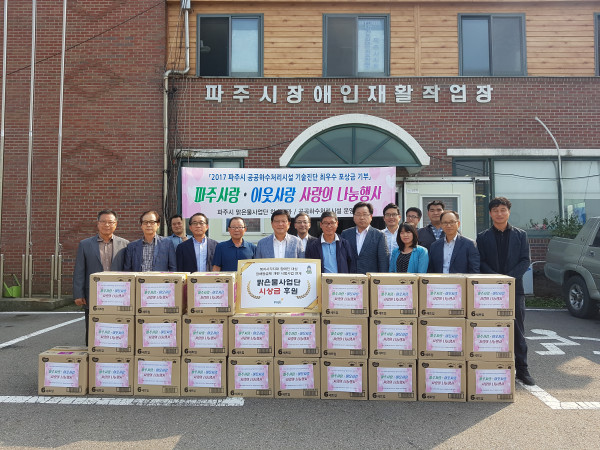 파주시는 공공하수처리시설 기술진단 평가에서 최우수시설로 선정돼 받은 포상금을 파주시장애인연합회에 기부했다고 25일 밝혔다.