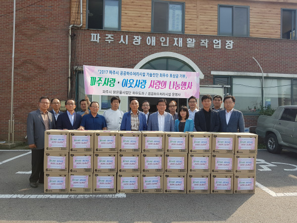 김재군 파주시 맑은물환경사업단장은 “수상의 기쁨을 어려운 이웃과 함께 하자는 직원들의 뜻을 모아 기부를 결정했다”며 “작은 정성이지만 추석명절을 앞두고 따뜻한 온정이 전달되길 바란다”고 말했다.
