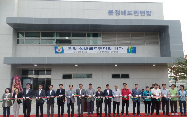 파주시 운정 실내배드민턴장 개관식이 지난 23일 백찬호 파주시 문화교육국장, 윤후덕 국회의원, 최종환, 박용수 경기도의원, 손희정, 김병수, 나성민, 손배옥, 손배찬 파주시의원, 이천석 파주시배드민턴협회 회장, 지역 배드민턴클럽 동호인 및 공사 관계자 등 약 100여 명이 모인 가운데 운정체육공원에서 열렸다.
