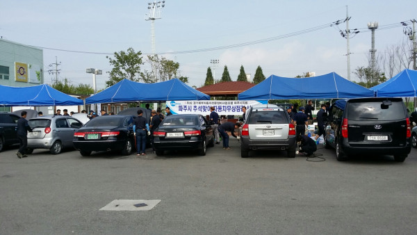 무상점검서비스는 고향을 찾아 장거리 운행을 하는 시민의 교통안전을 위해 경기북부자동차전문정비조합 파주시지회에 소속된 정비요원 70여명이 점검에 필요한 각종 장비를 갖추고 정비・점검은 물론 자동차관리요령 안내서비스도 제공한다.