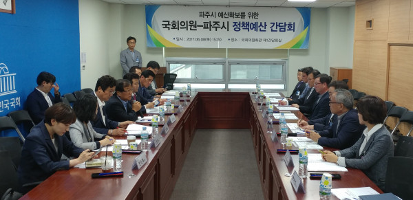 이번 간담회는 정·관이 함께 파주시 주요 현안 및 정책에 대해 발전적 대안을 모색하고 파주시 예산확보 방안을 논의하기 위해 마련됐다. 이날 간담회에서는 ‘접경지역 발전종합계획’, ‘주한미군 공여구역주변지역 발전종합계획’ 등 새 정부출범 후 중앙부처에서 검토되고 있는 다양한 계획들이 지속적으로 추진되길 건의했다.