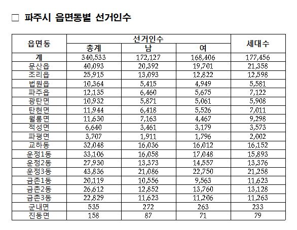 [총무과] 파주시, 19대 대통령 선거 선거인수 34만 533명 최종확정