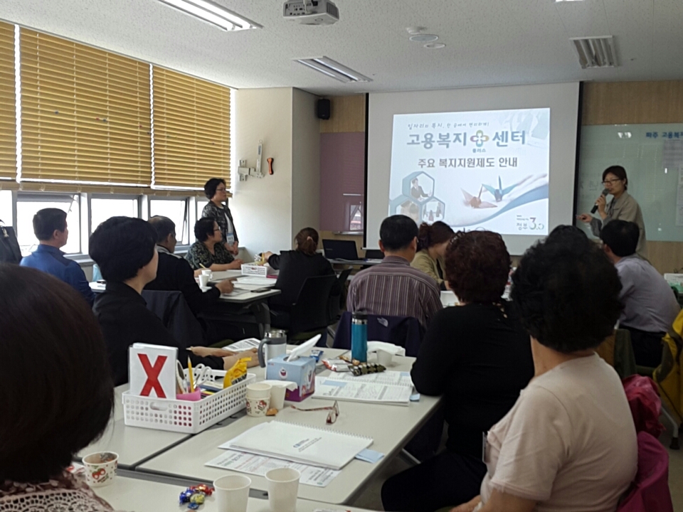 파주시 고용복지센터, 복지와 함께 손잡(JOB) 고(GO)! - 고용과 복지를 함께 안내하는 사업 실시 파주시 고용복지센터는 재취업 활성화를 위해 영유아, 노인, 장애인, 긴급지원, 저소득층 지원제도 등 주요복지제도를 안내하는 ‘복지와 함께 손 잡(JOB) 고(GO)'사업을 시행하고 있다. 구직자들이 안정된 생활 속에서 재취업을 도모할 수 있도록 고용복지플러스센터 입주기관과 협업해 실업급여 교육대상자나 집단프로그램 참석자에게 복지제도안내와 종합상담, 복지급여 신청 지원까지 원스톱체제로 진행하는 서비스다. 지난 해 6천800여명에게 안내돼 364명이 종합상담을 제공받고 연말 시민만족도 조사 결과 적극적인 복지제도 안내가 필요하다는 다수의 의견이 표출됐다. 이에 올해는 기존 36종에서 40종으로 확대해 안내하고 1분기 현재 62회 2천230여명에게 제도 안내가 이뤄져 복지제도·사업에 대한 궁금증을 해소할 수 있다. 파주시 고용복지센터 관계자는 “지금 복지제도안내를 받은 자가 본인, 또는 이웃이 적기에 필요한 도움을 받을 수 있도록 하고 취업장애요인 등을 해소시켜 고용영역으로 이끌 수 있도록 노력하겠다”고 말했다.