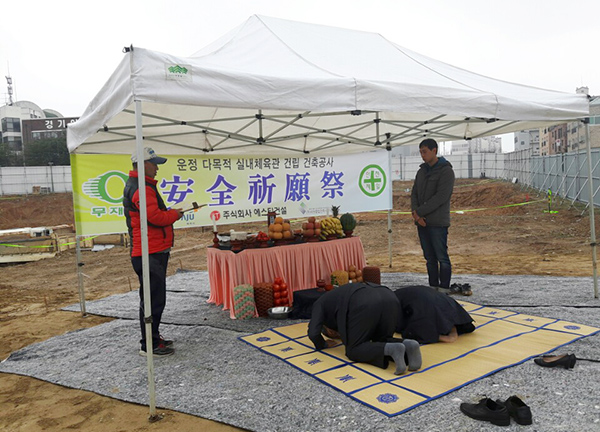 이날 오후 공사현장에서 열린 안전기원제는 시공사 주관으로 신규옥 문화교육국장, 최영호 체육청소년과장 등 발주청 관계자와 시공사 및 감리단 등 50여명이 참석한 가운데 공사기간 동안 무사고, 무재해, 무하자를 기원하기 위해 마련됐다.