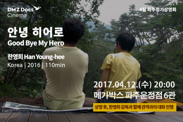(사)DMZ국제다큐영화제가 오는 12일 ‘안녕 히어로’란 작품으로 파주지역 4월 정기 상영회를 개최한다.