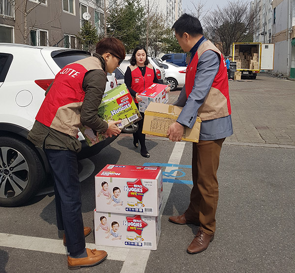 롯데프리미엄아울렛 파주점이 지난 30일 교하동 사례관리대상자 가구에게 생필품과 함께 따뜻한 마음을 전달했다. 지난 3월 17일 교하동행정복지센터에서 ‘교하사랑 나눔 가게 8호점’ 협약식 이후 첫 번째 지원이다.