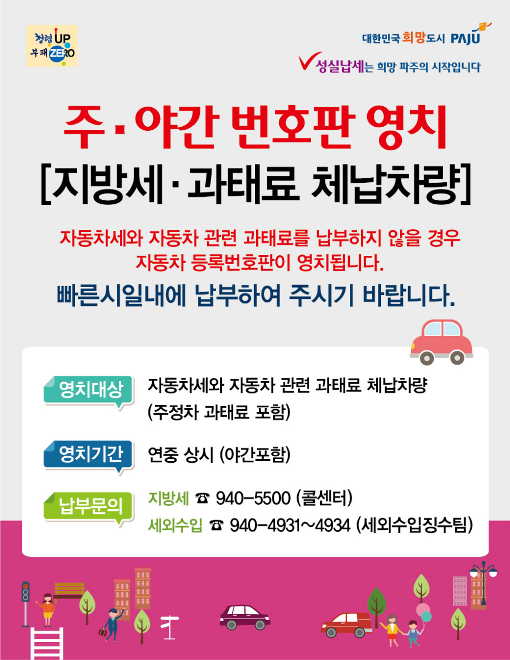 파주시, 지방세․과태료 주․야간 번호판 영치