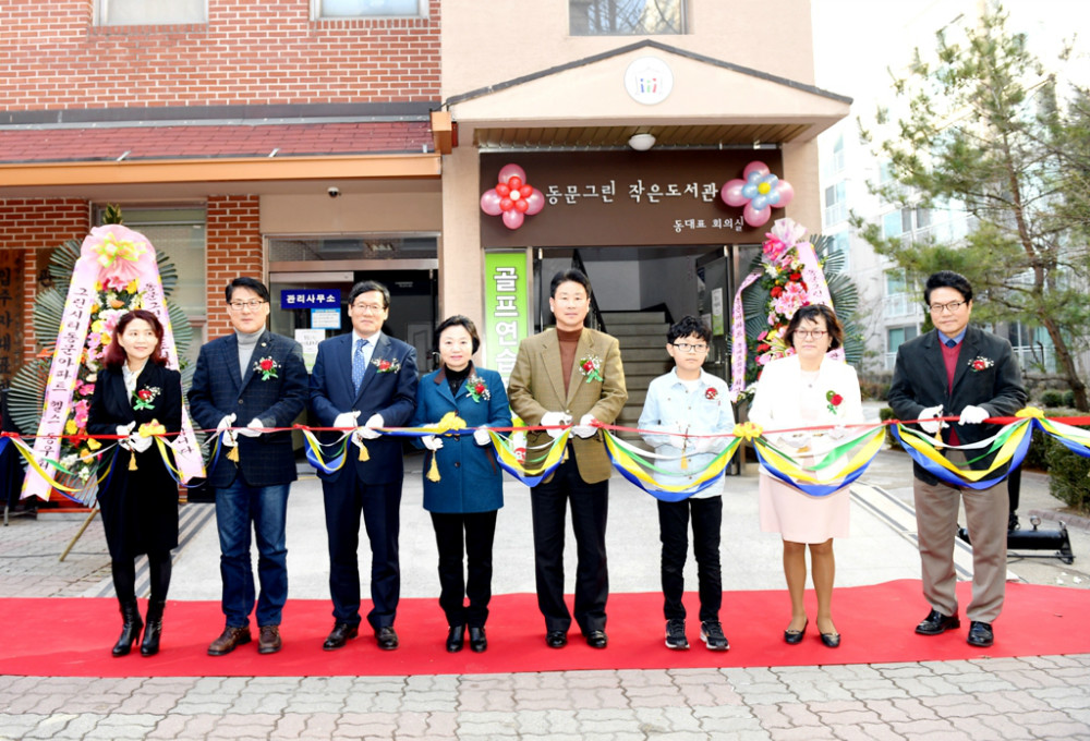 동문그린작은도서관은 문화체육관광부 작은도서관 조성 공모사업에 선정(사업비 1억원)돼 지난 해 10월 착공했다. 주민들과 여러 차례 논의를 통해 지난 해 12월에 관리사무소 2층 120㎡의 입주자대표회의 사무실을 자료실, 어린이방, 멀티미디어 코너 등 열람석 40여석과 도서 3천400여권을 갖춘 도서관으로 탈바꿈했다.