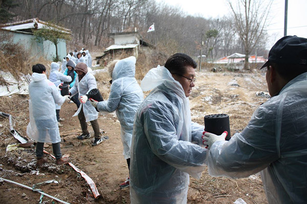 이날, 사회단체장들은 연탄차가 진입하지 못하는 저소득 14가구에 눈발이 날리는 쌀쌀한 날씨에도 아랑곳하지 않고 다들 행복한 미소로 서로를 격려하며 즐겁게 연탄나눔봉사를 실시하였다.