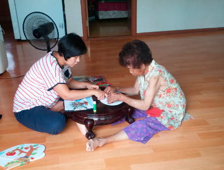 치매사례관리는 치매환자의 가정을 주1회 총 8회 방문해 인지기능 및 일상생활동작평가를 실시하고 두뇌활동노트 학습하기, 그림색칠하기, 퍼즐 맞추기, 연필꽂이 만들기, 부채 만들기 등 주의집중력을 높이고 손 감각을 자극해 인지기능을 향상시키는 프로그램으로 구성됐다.