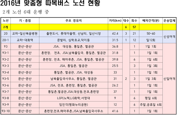 그동안 이용승객 부족으로 노선 운행이 어려웠던 장단, 교하지역이 대상이다.