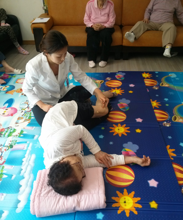 한방 진료 전 혈압을 측정하고 만성질환 관리가 잘 되고 있는지 문진을 통해 확인하고 침치료, 뜸, 다리 마사지 등을 함께 제공한다.