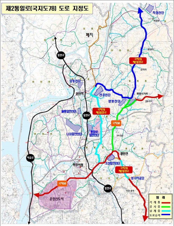 국토교통부가 지난 13일 국지도 78호선의 일부 노선을 지정 변경하고 도로 승격을 확정하는 고시문(2016-453호)을 발표함에 따라 시가 추진하는 제2통일로 사업에 시동이 걸렸다.