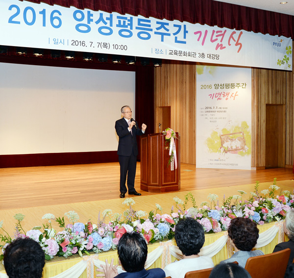 파주시(시장 이재홍)는 지난 7일 교육문화회관 대강당에서 ‘남녀가 함께하는 일 ․ 가정 양립, 가족 행복과 기업의 성장으로 이어집니다’라는 슬로건으로 ‘2016년 양성평등주간 기념행사’를 개최했다.