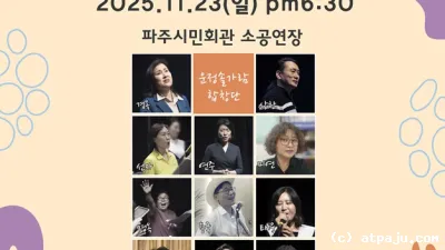 파주시 가람도서관 합창동아리, 창작뮤지컬 무대에 올리다 파주시 가람도서관은 ‘도서관 문화예술 동아리 지원사업’에 선정된 운정솔가람합창단의 창작뮤지컬 ‘합창단 이야기’가 오는 23일 18시 30분 ...